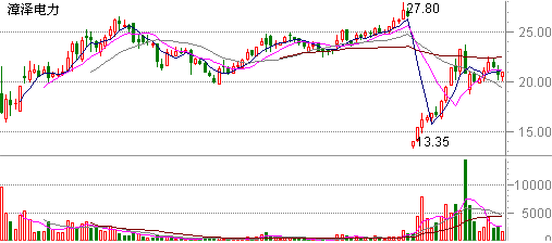 “漳澤電力”于97年6月9日上市,上市時4000萬的流通股,第一天僅成交948萬